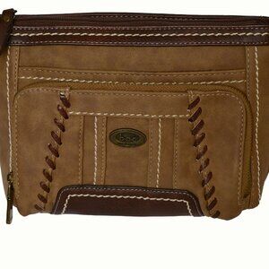 B.O.C. Born Concepts Brown Shoulder Handbag whip stitching Faux Leather Suede