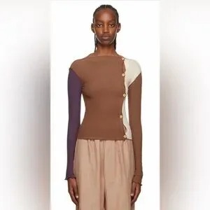 Raised seams,off set buttons, lettuce edge at cuffs and hems