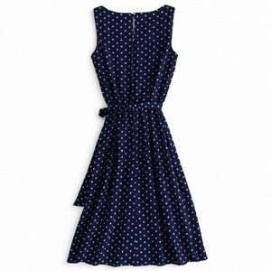 NWT Coldwater Creek Navy Polka Dot Tie Waist Classic Midi Dress Summer Travel 6
