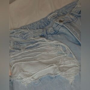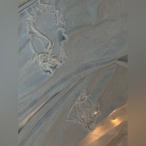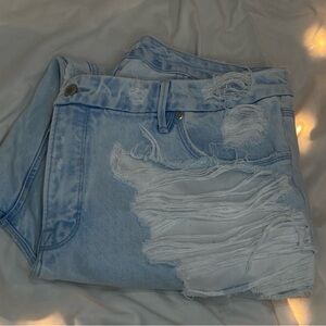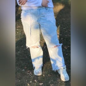Relaxed fit with a trendy distressed look. Light blue color. Ideal for casual wear.