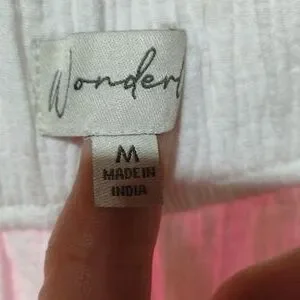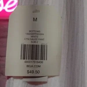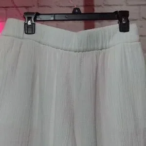 Stylish white wide-leg pants. Perfect for any occasion. NWT! White gauze pants. Waist measurement is 15 will stretch to 18, inseam is 30. Material is 100% cotton.