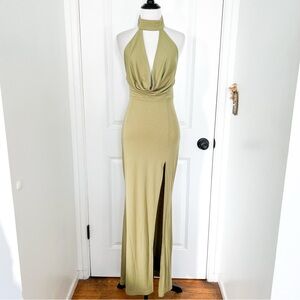 Hello Molly Backless Sage Green Halter Maxi Dress - Size 4