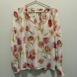 Rose & Olive Womens Top Large Floral Long Sleeve Fairy Peasant Sheer Romantic