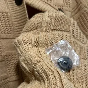 Elevate your wardrobe with this stylish mustard cardigan. Featuring a textured check pattern and bold black buttons, it's perfect for layering.