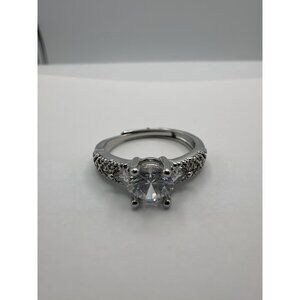 Cubic Zirconia Moissanite Silver Tone Adjustable Ring