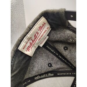 Rep San Antonio Spurs style with this premium Mitchell & Ness snapback hat. The heathered gray wool crown offers a sophisticated texture, perfectly complemented by the bold black embroidered Spurs logo and "San Antonio" text across the front. A contrasting black brim and subtle embroidered team logo patch on the side add authentic athletic flair. The "Mitchell & Ness" script embroidered on the back showcases heritage craftsmanship, while the "Hardwood Classics" tag inside confirms its vintage-inspired design. Ideal for game days, casual outings, or adding a sporty touch to your everyday look.
