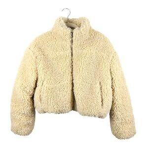 Cali 1850 Los Angeles Cream Faux Fur Sherpa Cropped Jacket Women's Size Small