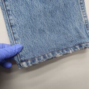 In very good preowned condition. Some minor wear at seat as shown. Professionally hemmed to a 27" inseam.