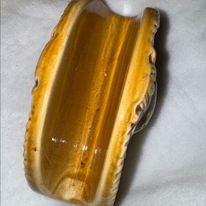 This charming ceramic set features two cow-shaped salt and pepper shakers and a central napkin holder, all resting in a wooden base. In excellent condition with a cute, retro aesthetic, perfect for a farmhouse kitchen or collector.