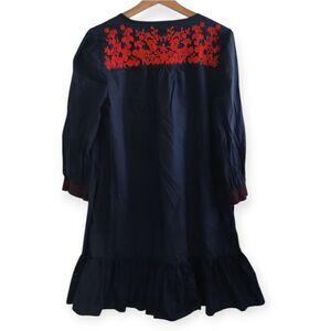 J. Crew Dark Blue Dress with Bright Red Embroidery Size S
