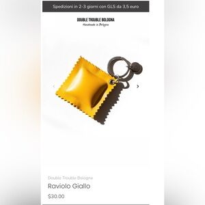 Brand new Double Trouble Bologna yellow leather ravioli keychain with silver hardware.