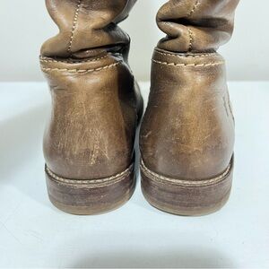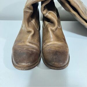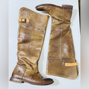 FRYE Paige Brown Leather Knee High Riding Boots. Natural distressed look with light and darker brown.