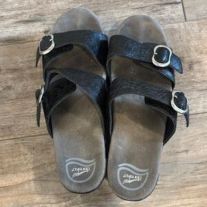 Step out in style with these chic black sandals featuring elegant buckle details. Perfect for any occasion, these shoes offer both comfort and sophistication.