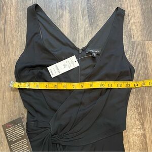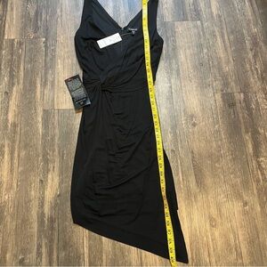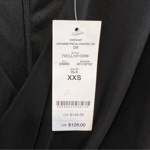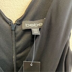 NWT BeBe Vibrant Asymmetrical Draped Dd black Dress. V neckline Size XXS