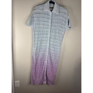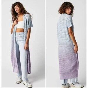 Free People Alicia Crochet Long Cardigan Sweater Indigo Orchid Umbre Size XS NWT
