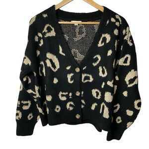 Topshop Boxy Oversized Fit Leopard Cardigan Sweater Black Cream US 4–6 Cozy