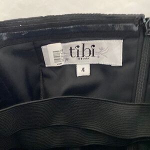 Really gorgeous strapless dress from Tibi. Timeless elegant style with a sweetheart bodice. Floral design on hem. Back vent. Back zip. Lined. Built in bra, my favourite functional feature of this dress. In excellent preloved condition.