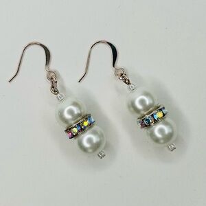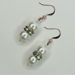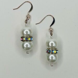 HAND CRAFTED Pearl EARRINGS White Silver Czech Crystal Rondelle Drop NWT