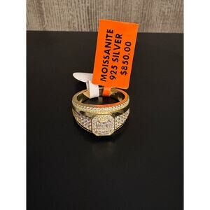 Sz. 9 - Mens 3ct Moissanite Vermeil over 925 stamped Silver Ring