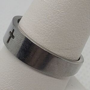 Spikes Stainless Steel Silver Colored Cross Ring 9