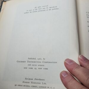 The product is a hardcover cookbook titled "Gourmet's 1961 Basic French Cookbook." Published by Gourmet Cooking Inc, this edition is a vintage nonfiction cookbook with illustrated features. It is intended for adults and features gourmet recipes in English. The cookbook belongs to the After Dark series and is a unique addition to any cookbook collection.
