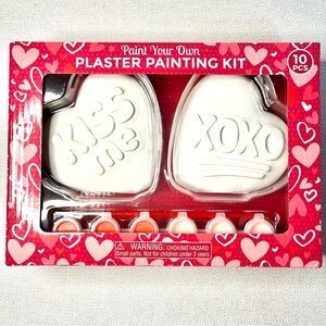 Express your creativity with this Valentine's heart plaster painting kit. Perfect for home parties, this kit features white plaster hearts ready for your artistic flair.