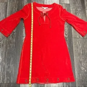 Boston Proper 3/4 Sleeve Red Grommet Terrycloth Tunic Mini Dress Size Small