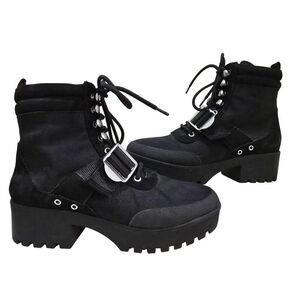 Steve Madden Women's Grady Lug-Sole Booties Black Lace Up Chunky Heels Military Grunge Moto Style Size 9