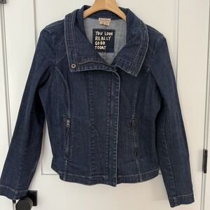 Dick & Jayne Los Angeles Denim Jacket Women's Asymmetrical Zip Front Size MED