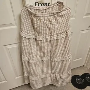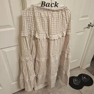 Never Worn Charming brown gingham Skirt featuring delicate lace trim. Perfect for casual outings, picnics, dinners or just feeling pretty🩷, super flowy with a elastic band in the back of the waist band for comfort.