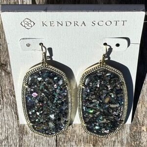 Beautiful Kendra Scott Danielle drop earrings in a rare, limited edition purple crushed abalone. These statement earrings feature a shimmering mix of purple, blue, green, and silver tones set in Kendra Scott’s signature gold-tone Danielle frame.