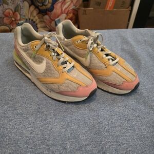 Stylish Nike sneakers with a multicolor design. Features yellow, pink, and beige accents.