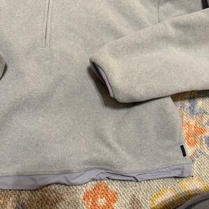 Aritzia Golden Polartec® 200 1/4 Zip Sweater Heather Chrome Gray. Mockneck 1/4-zip sweater with zippered pockets and a cinchable shockcord hem. It’s made with Polartec® 200 — breathable micro thermal fleece that delivers weightless warmth and soft comfort for versatile performance.