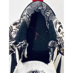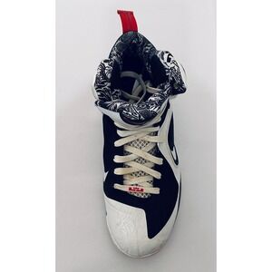 Dominate the court with these Nike LeBron 9 basketball shoes. Experience incredible responsiveness and locked-in support with every stride, jump, and cut. The bold black and white colorway with striking red accents makes a statement, while the unique graphic lining adds a touch of personal flair. Perfect for intense games or showcasing your athletic style off the court.