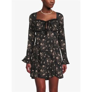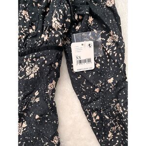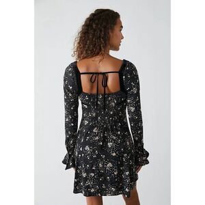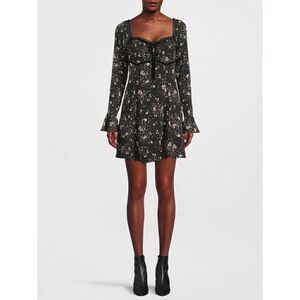 NWT Free People Tess Floral Print Long Sleeve Mini Dress in Black Combo, Size XS