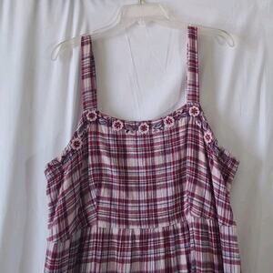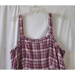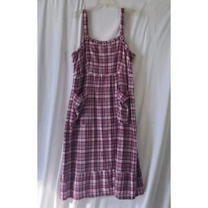 April Cornell Womens Red Pink Plaid Tank Midi Dress Large Pockets 100% Cotton