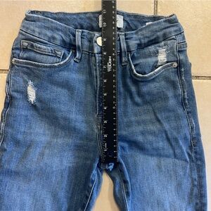 Excellent Preowned Condition Frame Jeans Size 27. It features some distressing in Le Crop Mini Boot Jeans.