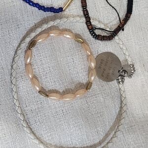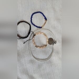 Includes beaded bracelets and braided faux leather style bracelet.
