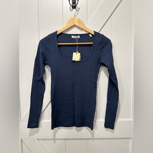 NWT Doen Romy Pointelle Tee in Navy - Small