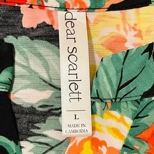 Elevate your wardrobe with this stunning floral print blouse. Featuring vibrant orange and pink flowers on a classic black background, it's perfect for any occasion.