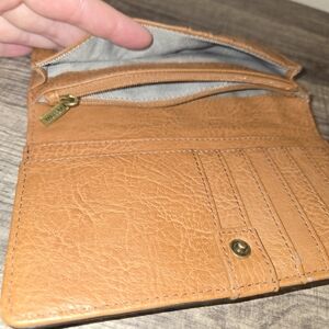 The Fossil Liza wallet was introduced in the early 2010s as part of Fossil's women's accessories collection. It features a distinctive patchwork design with contrasting colored leather panels stitched together. The Liza wallet line became popular for its functional organization and playful aesthetic.