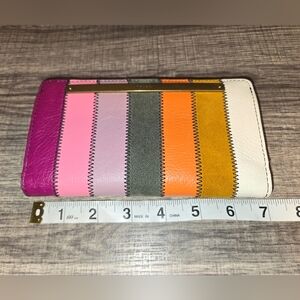 Stylish and vibrant, this Fossil women's wallet features a striking multicolor design. Crafted from high-quality leather, it combines pink, orange, and white hues for a bold look. Perfect for adding a pop of color to your accessories collection.