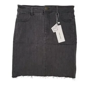 Three Brome Black Denim Straight Pencil Skirt Raw Hem NEW. NWT Size 26 Junior L.