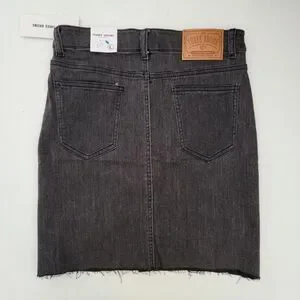 Three Brome Black Denim Straight Pencil Skirt Raw Hem NEW Size 26 Junior L