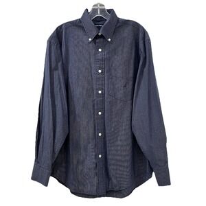 Nautica Mens Shirt M Blue Multicolor Check Button Down L/S 80's Two Ply Cotton