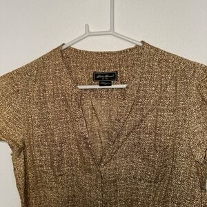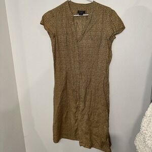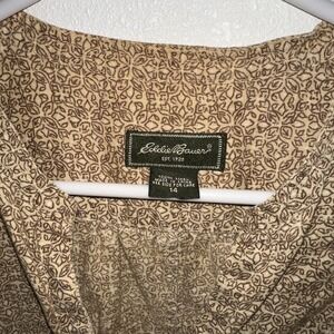 Eddie Bauer Maxi Dress Button Up Size 14 Linen Short Sleeve Brown