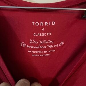 Chic red long sleeve top by Torrid. Features a flattering V-neck design. Ideal for versatile styling.