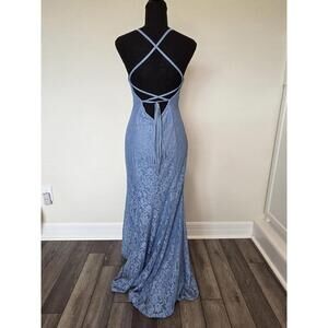 Azazie Steel Blue Maldive Lace Dress - Excellent Condition