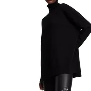 Keywords: ALLSAINTS sweater, turtleneck sweater, oversized knit, chunky knitwear, wool blend, asymmetrical hem, minimalist, luxe basics, winter fashion, cozy, streetwear, designer knit, modern silhouette