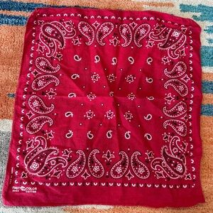 Vibrant red bandana with classic paisley design. Perfect for versatile styling. See photos for details and measurements. Perfectly worn in.